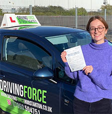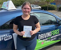 Ellen Spencer passed her practical test at DVSA Kings Lynn, First time, this is what Ellen said about learning with Driving Force.